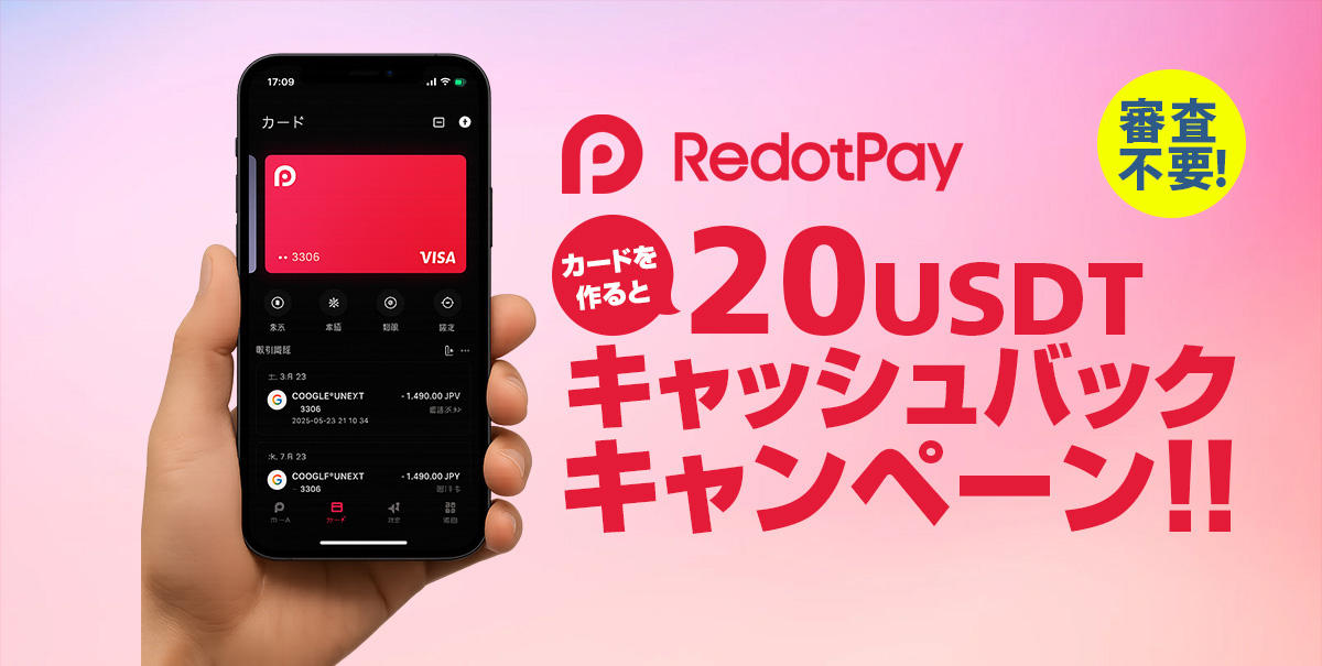 キャッシュバックされた20USDTをRedotPayカードへ簡単にチャージすることも出来ます。